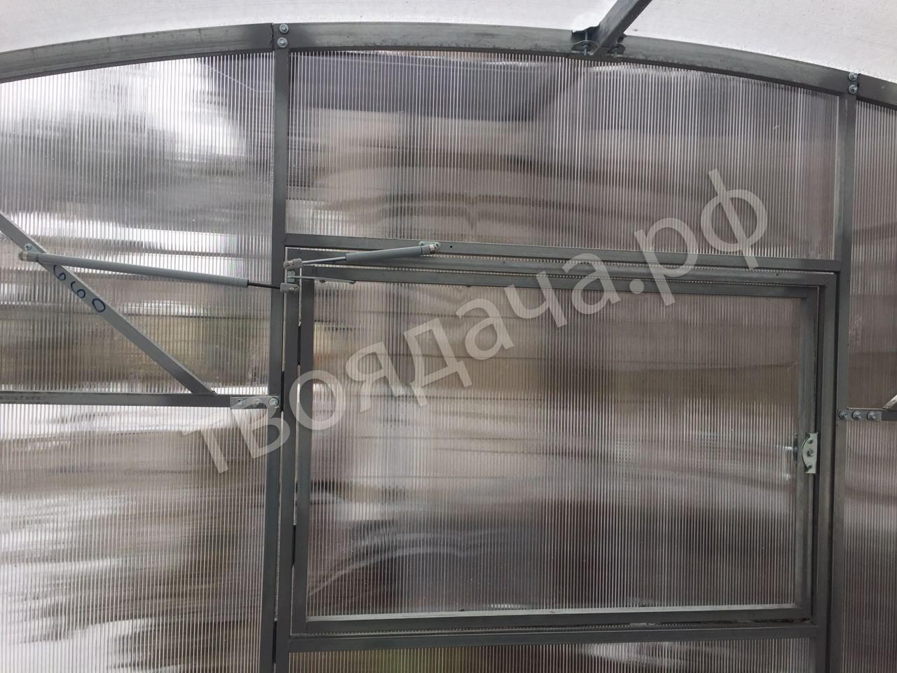 Обращаем Ваше внимание, наши крепкие теплицы из поликарбоната в основном имеют следующие характеристики: высота каркаса составляет 2 метра, ширина — от 2 до 4 метров, а длина теплиц под сотовый поликарбонат может быть любая, увеличивается за счет вставки по 2 метра. Все наши теплицы удобны в эксплуатации. В комплектацию входят 2 двери и 2 форточки без дополнительных доплат - с каждой стороны наших теплиц расположена широкая дверь с удобной для проветривания форточкой, это позволяет легко регулировать температуру в теплице.